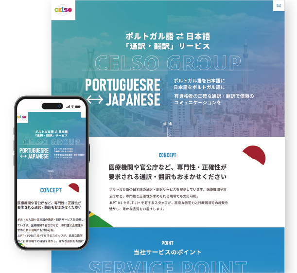 広告運用に適した、営業向きの1ぺージロング構成のホームぺージです。サービスの拡大や新規顧客獲得を目指す方に最適なホームぺージです。